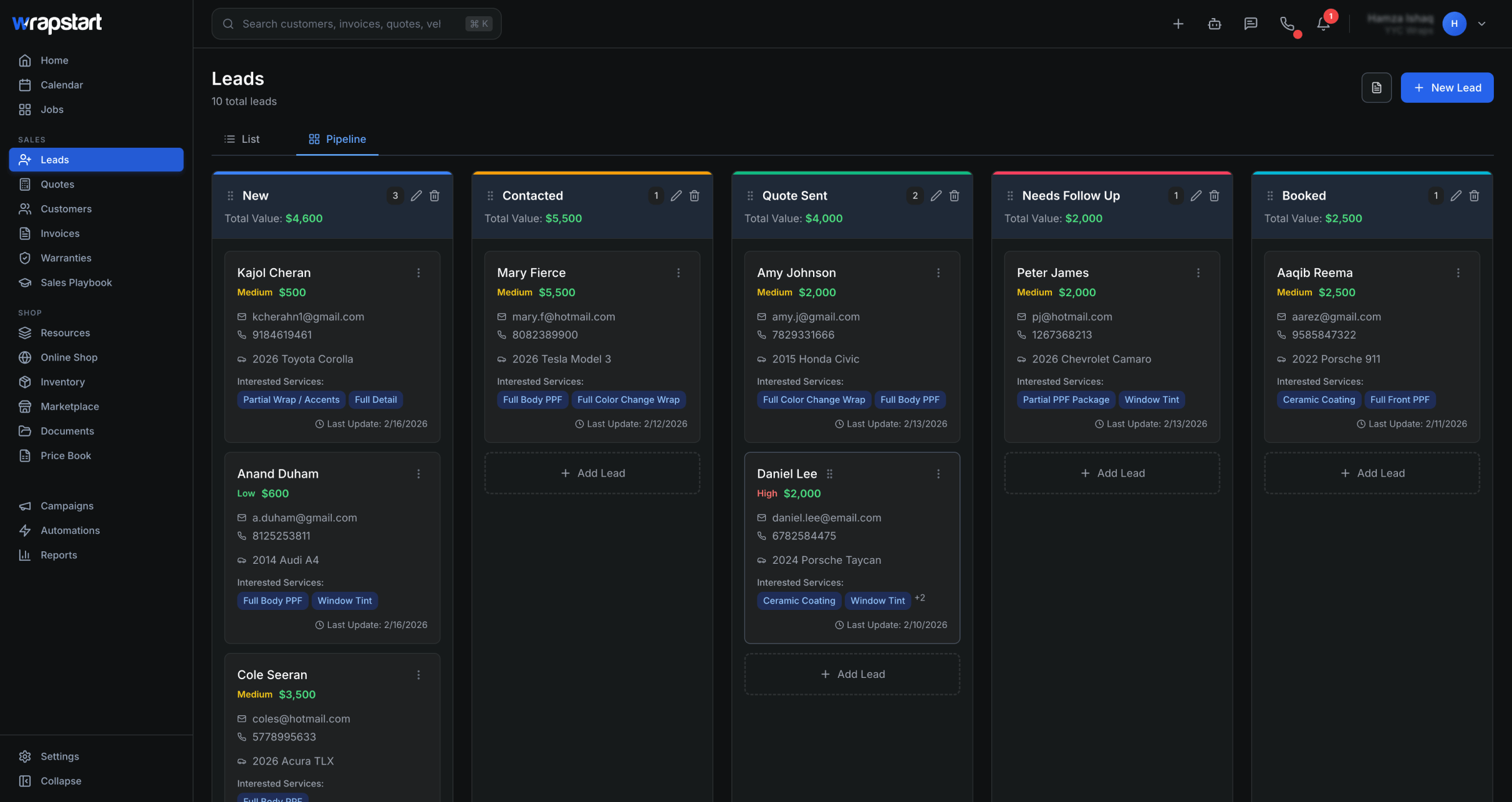 Wrapstart is an all-in-one AI powered CRM, scheduling, invoicing, and shop management platform built specifically for auto wrap shops. Book more jobs, recycle existing customers, manage bays, automate interactions, run campaigns and get paid — all in one place.